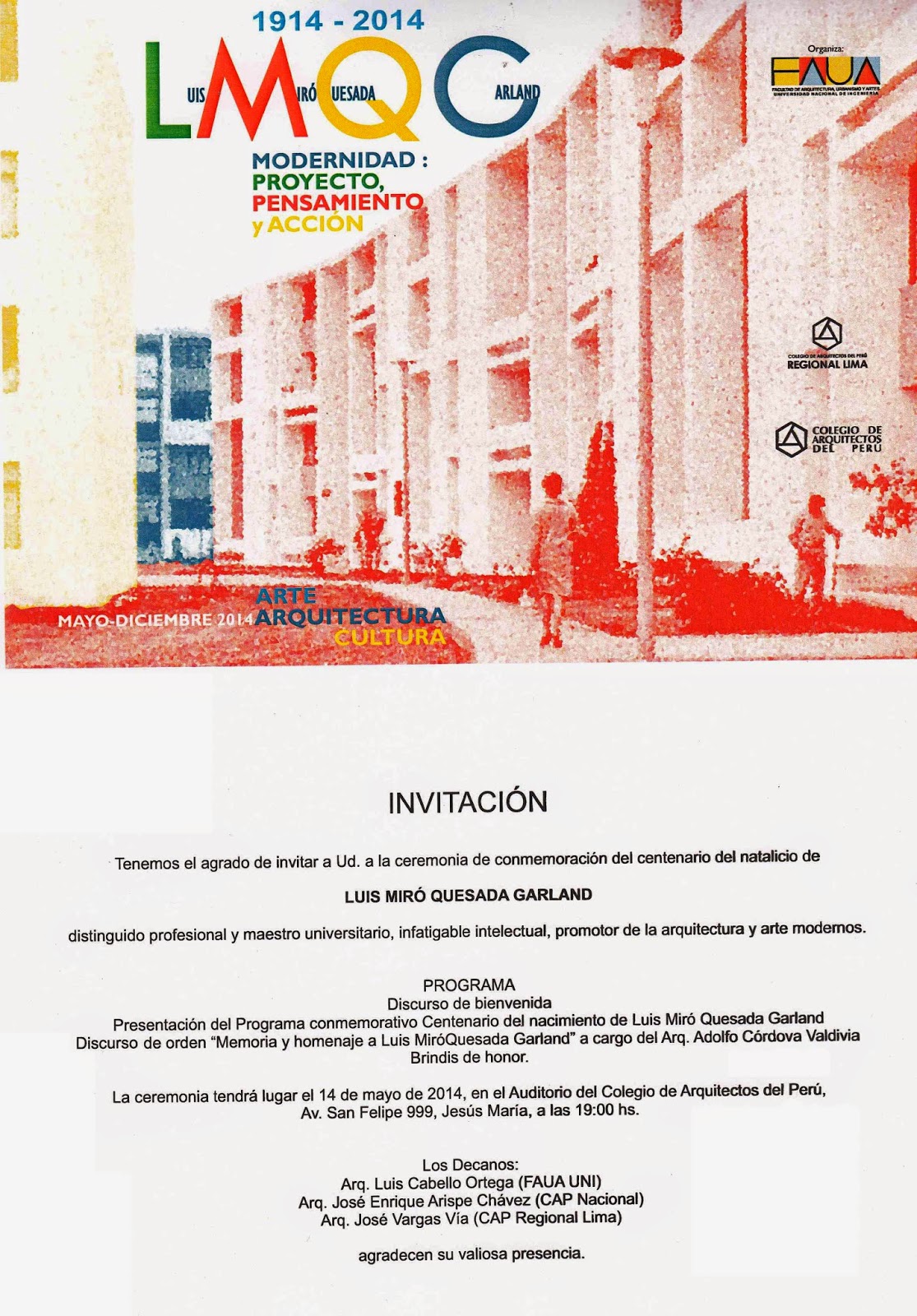 Finalmente una reflexión y un pedido. Cartucho dejó con su casa de Jesús María toda una lección de arquitectura. Aunque declarada patrimonio nacional, ha sido alterada y luce descuidada. Pero es aún recuperable. El mayor homenaje a su memoria sería ponerla en valor. Con el apoyo de varios miembros de la Academia de Arquitectura y Urbanismo, repito hoy una sugerencia formulada hace unos días: Que esta valiosísima casa sea adquirida por El Comercio o por una Fundación a constituirse con su auspicio. Dedicada a museo de arquitectura, desde su propia obra podría retomarse la tarea que lideró su autor: campañas para despertar interés público por la arquitectura y el urbanismo. Exposiciones, seminarios, premio anual, crítica y debate sobre la arquitectura, sobre el espacio público, sobre la ciudad, publicaciones, etc. continuarían una labor que ahora se extraña. El homenaje estaría así más cerca de lo que merece la memoria de Luis Miró Quesada Garland, maestro y fundador de nuestra arquitectura moderna, intelectual y ciudadano coherente. Ser humano intachable.